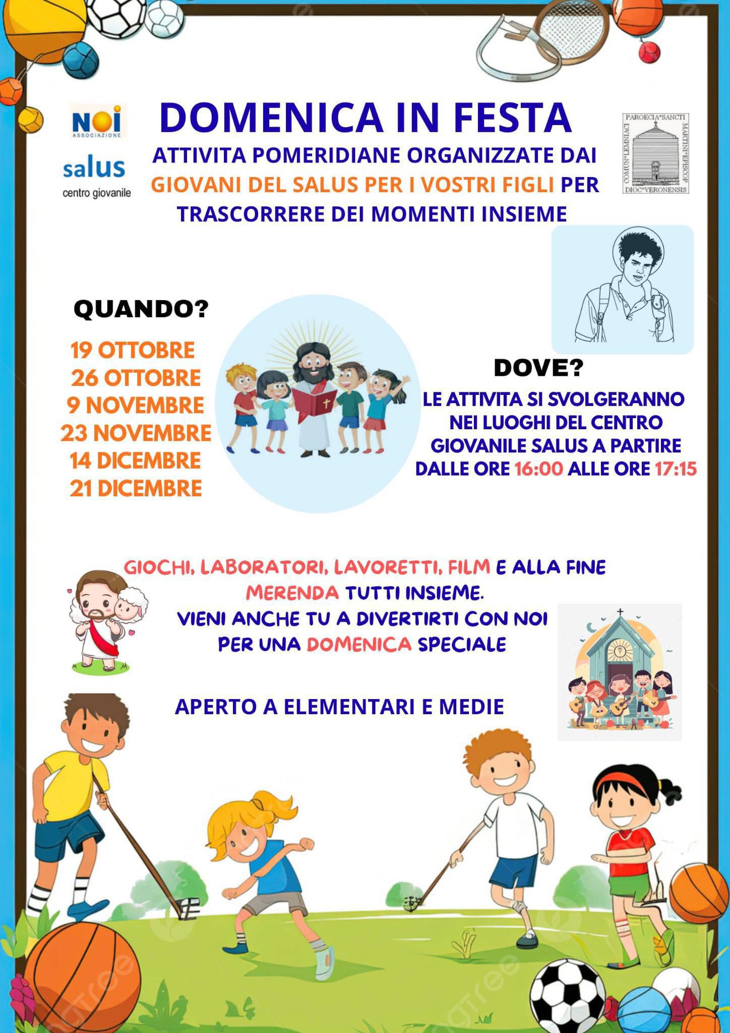 Pomeriggio speciale organizzato dai Giovani del Salus per bambini delle scuole elementari e medie: giochi, laboratori creativi, lavoretti, visione di film e una merenda finale da condividere tutti insieme. Un’occasione per divertirsi in compagnia e vivere una domenica diversa dal solito.