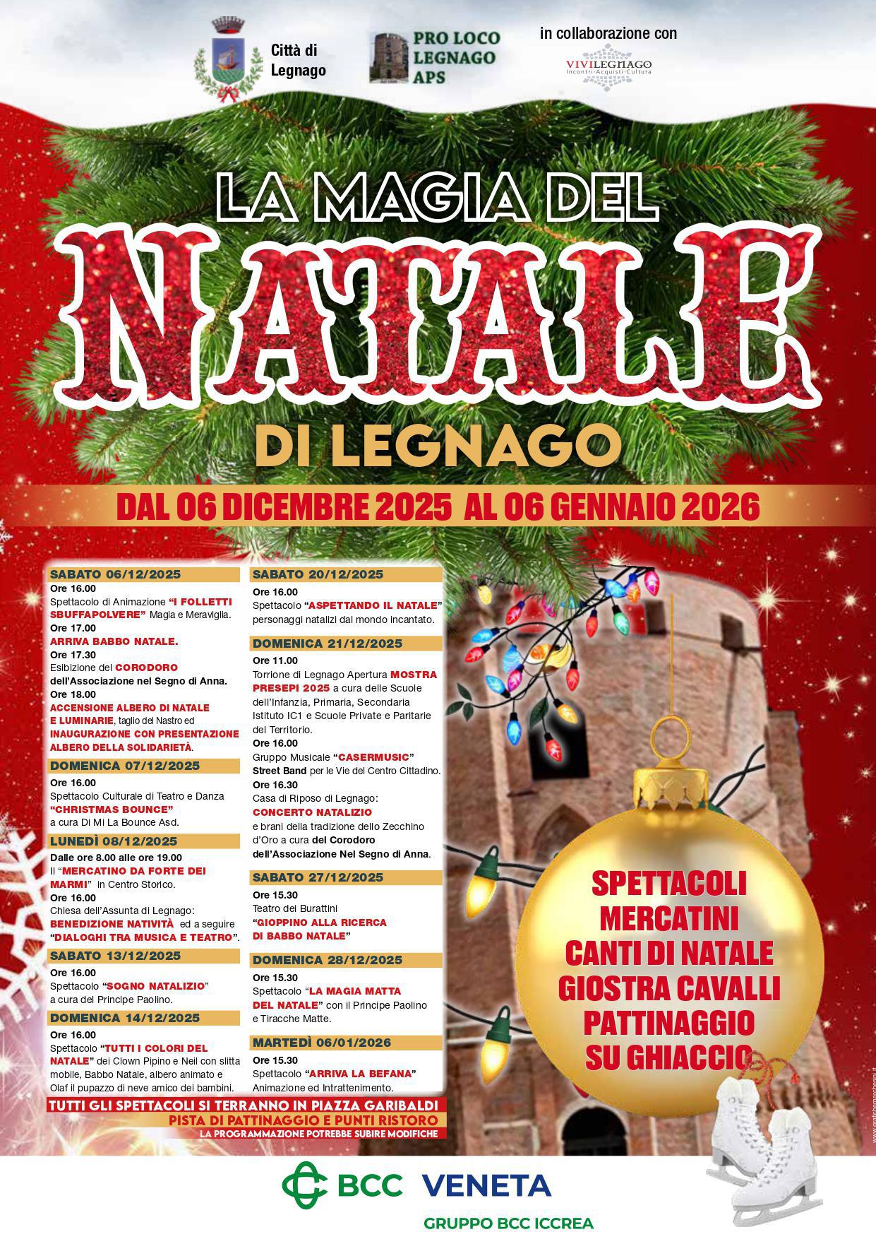 🎁 Tutti gli eventi sono gratuiti e inseriti nel programma ufficiale “La Magia del Natale di Legnago 2025”, promosso dalla Città di Legnago e dalla Pro Loco con la collaborazione di ViviLegnago.