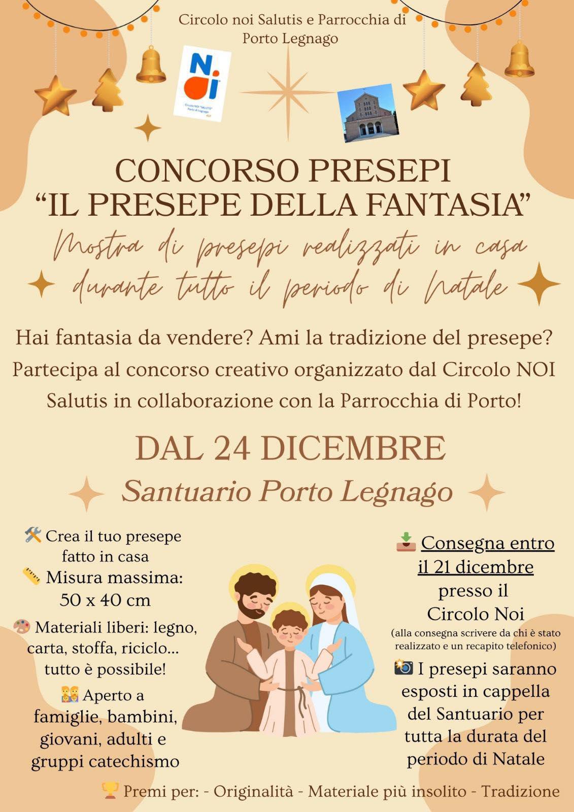 Il Circolo NOI Salutis, in collaborazione con la Parrocchia di Porto Legnago, organizza un concorso creativo dedicato ai presepi realizzati in casa. Una mostra aperta per tutto il periodo di Natale, all’interno del Santuario di Porto.