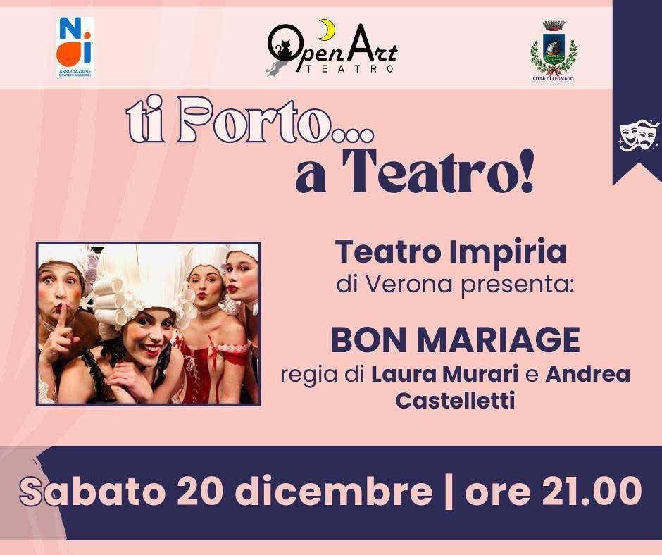 In scena la compagnia Teatro Impiria di Verona con la brillante commedia “Bon Mariage”, diretta da Laura Murari e Andrea Castelletti.